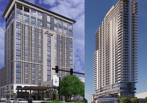 Plans for the three-building property include 180 residential units, rooftop amenities, office space and ground-floor uses.