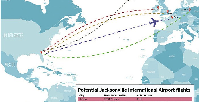 A consultant identifies the target cities and challenges involved in landing transatlantic service at Jacksonville International Airport.