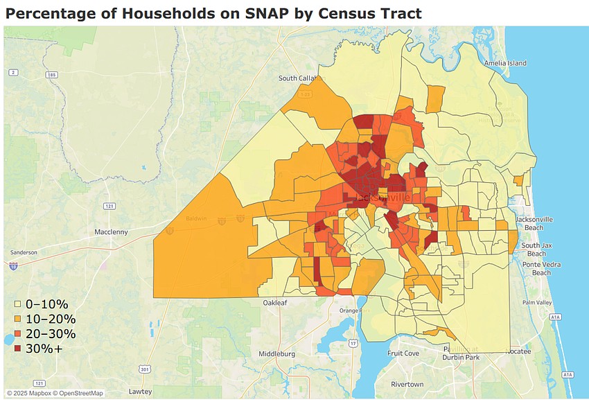 Pittman’s district, which encompasses neighborhoods in north and west Jacksonville, has the most residents reliant on SNAP benefits.