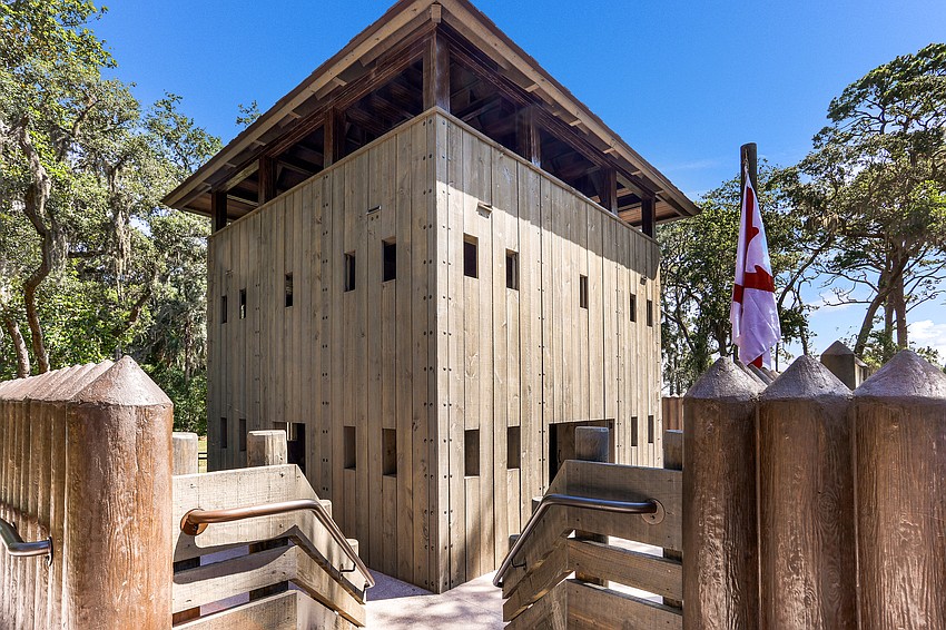 A historically accurate, full-scale replica of the 1738 Fort Mose at Fort Mose Historic State Park in St. Augustine. The structure is 39 feet tall and features a historically accurate moat surrounding its palisade walls.