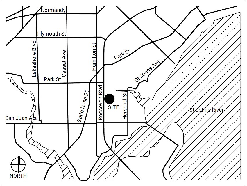 The site is along the west side of Roosevelt Boulevard between Melrose Avenue to the north and Beverly Avenue to the south. It is about 3 mile north of Ortega Park, formerly known as the Roosevelt Square shopping center.