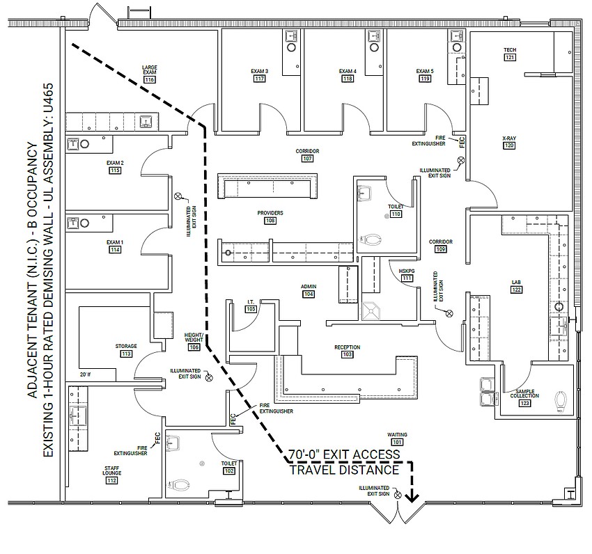 Plans show six exam rooms, a lab, an X-ray room and other clinic uses.