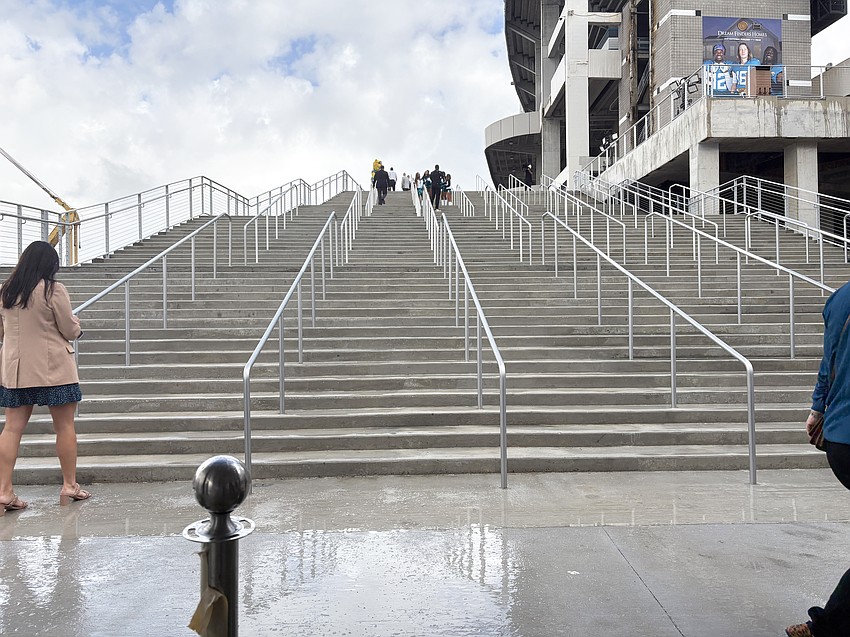 The stairs’ construction allows the Jaguars to consolidate its gates around Lot J. Lamping said that with the wider stairs installed, the team will open a “super gate” that would make accessing the fan entertainment zone easier.