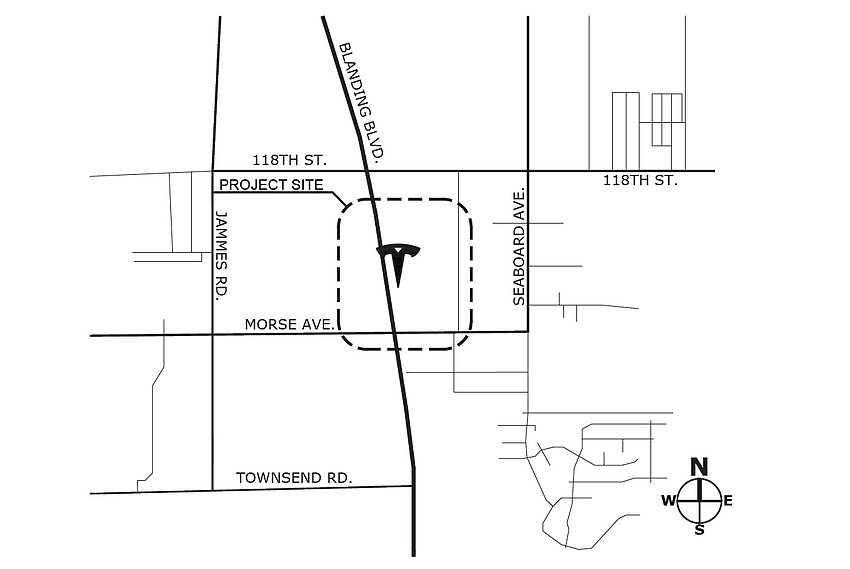 The property is between Timuquana and Collins roads, east of Interstate 95 and west of Roosevelt Boulevard. More specifically, it is near northeast Blanding Boulevard and Morse Avenue.