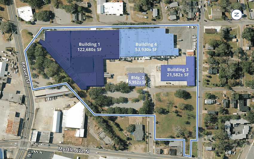 Colliers says the 204,144-square-foot warehouse and office complex is on 11 parcels that total 11.41 acres at northwest Beaver Street and Myrtle Avenue.